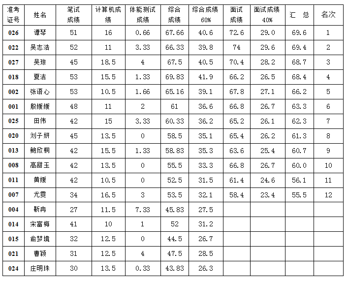 泰州消防救援支隊2021年公開招聘文員 人員筆試面試成績及總成績公告