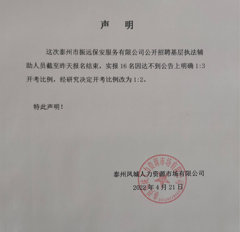 振遠(yuǎn)保安有限公司公開招聘基層執(zhí)法輔助人員公告